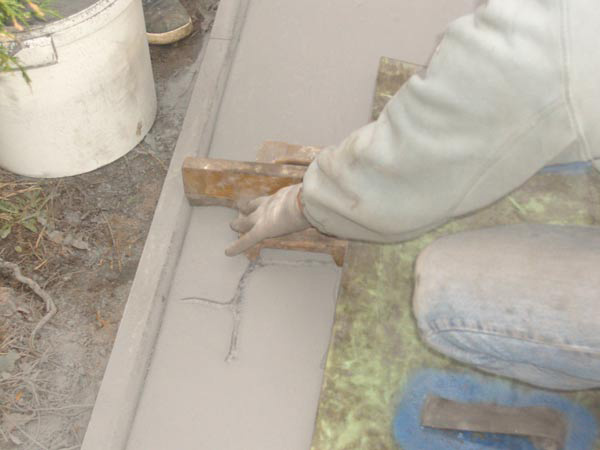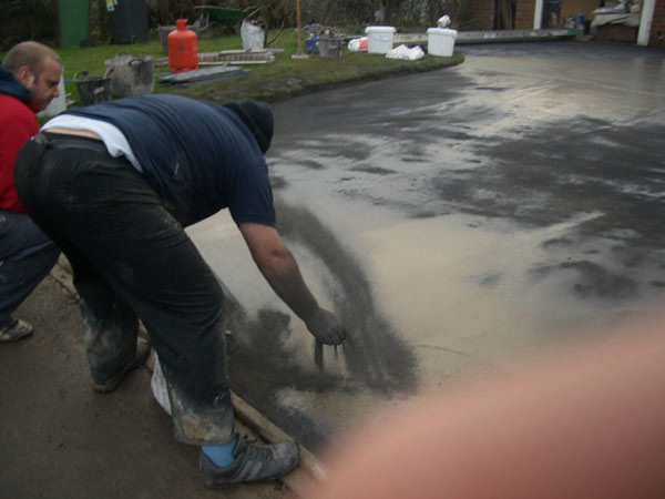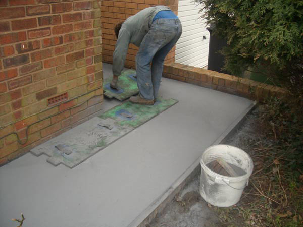 The colour hardener is then trowelled and floated into the concrete to ensure a smooth finish. When ready, the concrete is then imprinted with a pattern of your choice. The concrete should be left undisturbed for 24 hours.